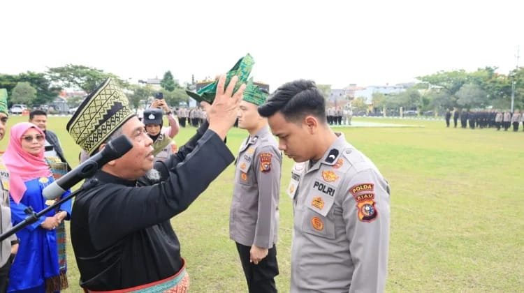 “Bagi Polda Riau, tanjak dan selempang menegaskan dua dimensi tanggung jawab anggota Polri: konstitusional sebagai penegak hukum dan kultural sebagai bagian dari masyarakat Melayu. Langkah ini juga bertujuan memperkuat pelayanan publik yang humanis, responsif, dan berkeadilan,” ujar Kombes Pol Boy.
